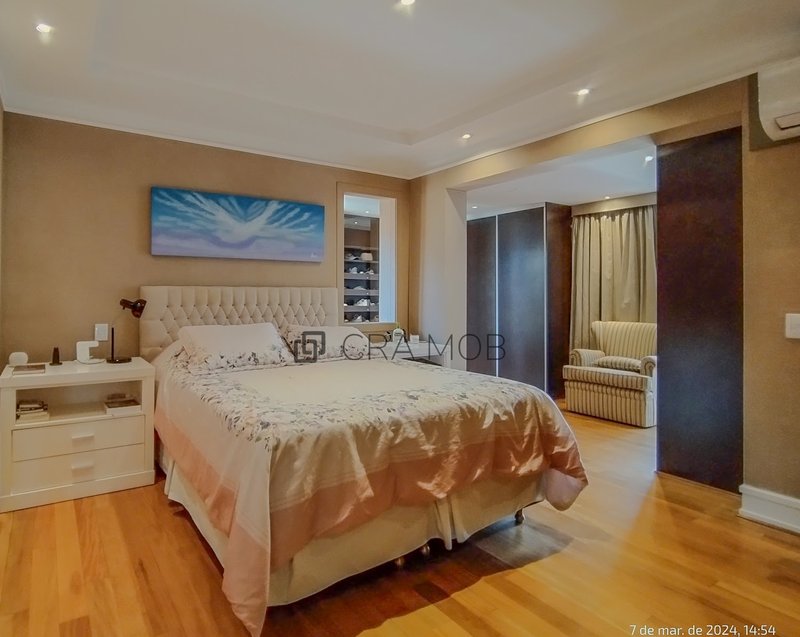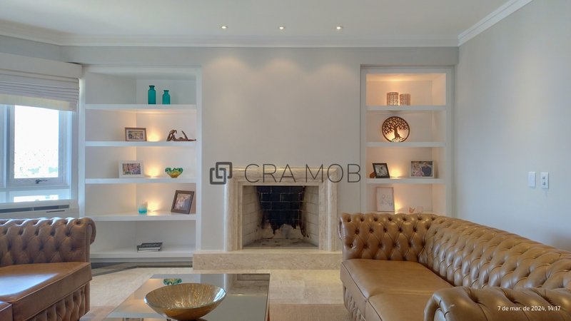 No primeiro pavimento; composto por hall privativo com elevador codificado, entrada social com porta blindada, piso de mármore, living com 4 ambientes, louçaria, lareira, sacada fechada, copa-cozinha, área de serviço, dependência de empregada completa, 3 suítes sendo 1 master com closet e um amplo banheiro. praça No segundo pavimento, área social para receber amigos e fazer ótimas festas, espaço gourmet com churrasqueira, fogão à lenha, estar com lareira, jantar com voltado para o lindo terraço. Na área intima do segundo pavimento temos 1 dormitório, banheiro com banheira, ateliê e escritório. A ampla área externa é composta por um deck com piscina aquecida através de paineis solares, um charmoso espaço com plantas, espaço parrilla, com vista cinematográfica da cidade e da praça.